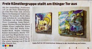 "Eine besondere Ausstellung in einem besonderen Ambiente" ist derzeit in der Caponniere 4 zu sehen. Das Gewölbe bespielt eine unabhängige Gruppierung von Malern, Grafikern, Objekt-, Video- und Installationskünstlern sowie Fotografen, die aus Ulm, Neu-Ulm und der Region stammen oder dort leben. Ihre Gemeinschaftsschau nennt die Freie Künstlergruppe Ulm/Neu-Ulm schlicht "Kunst in der Caponniere 4".